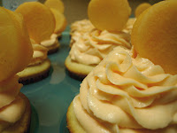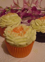 First we have the Summer Cantelope Cupcake from Mary at Shazam in the Kitchen. Not liking melon at all, Mary remember a cantaloupe salad that she had tried for inspiration. Thanks Mary!